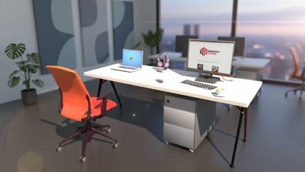 Enhance your 3D office scenes with this realistic Office Table Props Pack This collection includes a variety of essential tabletop items modeled and textured to add detail to any modern office or workspace environment. The collection includes detailed items such as a sleek wooden desk, office chair, desktop monitor, laptop, keyboard, glasses, headphones, tea mug and stationery holder. Each object is textured and optimized for real-time rendering in games, animations, or interior design previews. Perfect for professional or home office scenes, the model is ready for use in Blender, Unity, Unreal Engine, and other 3D platforms.