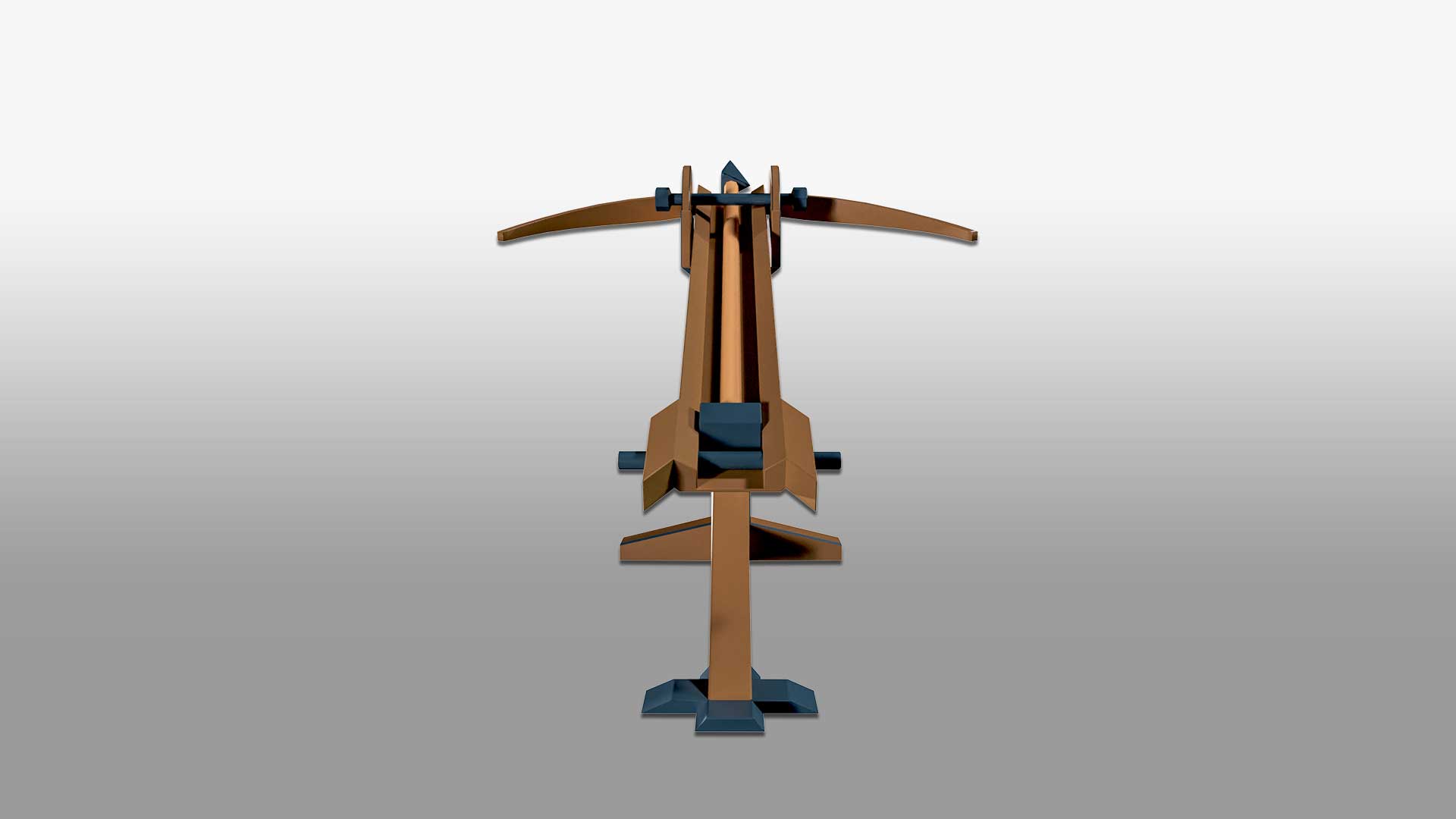 Ballista Bow 3D model features intricate details of its frame, arrow, arm, and projectile. Crafted with precision, this low-poly 3D model showcases a blend of wood and metal for the frame, ensuring authenticity and realism.