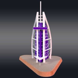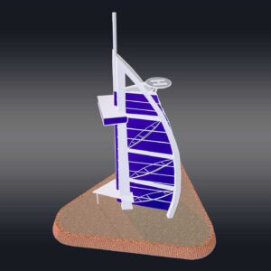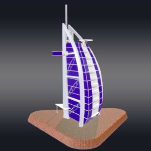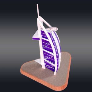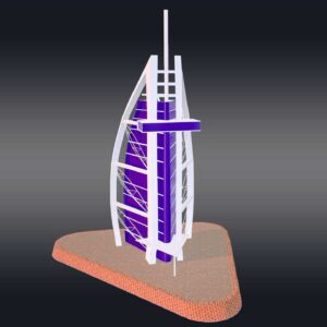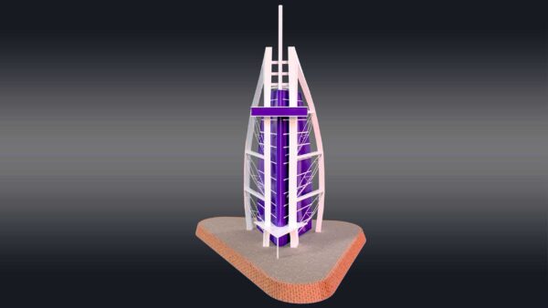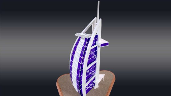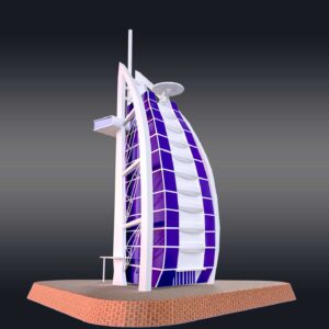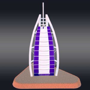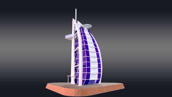 A 3D model of the Burj Al Arab represents the iconic Dubai landmark, renowned for its stunning architectural design. Created in Autodesk Maya, this low-poly 3D architectural model features realistic textures applied using Substance Painter. It’s designed for easy integration with drag-and-drop functionality, making it ideal for 3D visualization projects. Despite its low-poly nature, the model boasts high-detail elements. It includes albedo, metallic, and normal textures in PNG format, with dimensions of 4096 x 4096 pixels. The model is fully UV mapped, ensuring accurate texture placement.