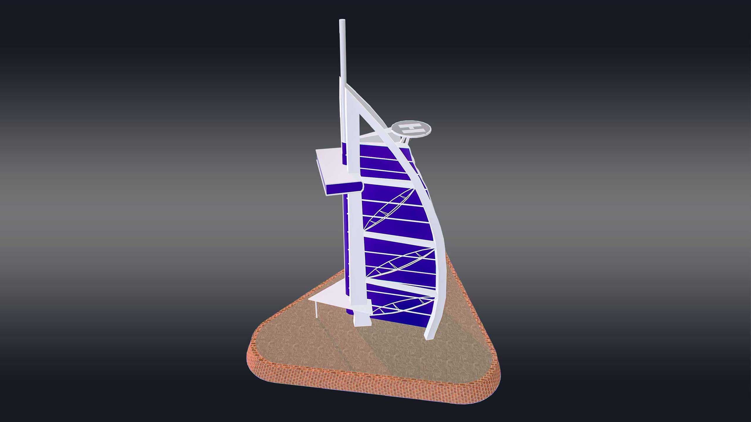 With 2388 vertices, 1968 faces, 4145 edges, and 4282 tris, this 3D design offers a balanced polygon count suitable for various applications. It supports multiple 3D file formats, including Maya (.ma, .mb), FBX, OBJ, C4D, Blender, and 3ds Max, ensuring compatibility with popular 3D rendering tools. This Burj Al Arab 3D model is perfect for creating virtual hotel models and enhancing architectural visualization projects.