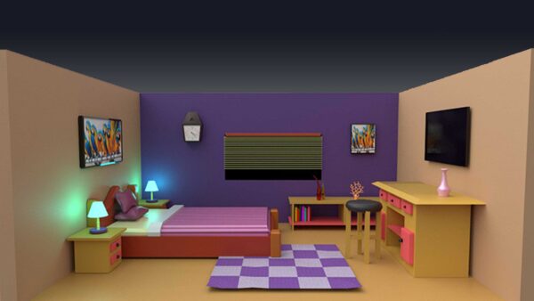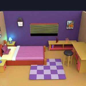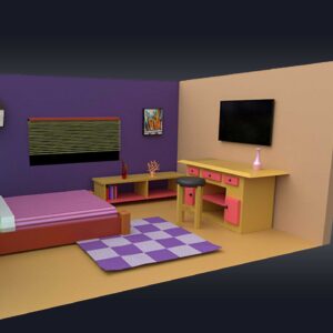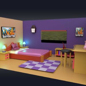 In this 3D cartoon bedroom model, you’ll find essential bedroom items like a bed, wall clock, table, stool, lamps, bookshelf, LED TV, and wall painting. Each item is carefully crafted to fit the cartoonish room design, adding a touch of fun and creativity to your scene. The textures include albedo, metallic, and normal maps, all in PNG format with dimensions of 4096 x 4096 pixels, ensuring high resolution and clarity.
