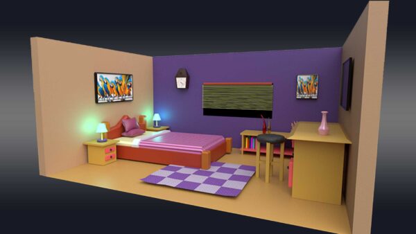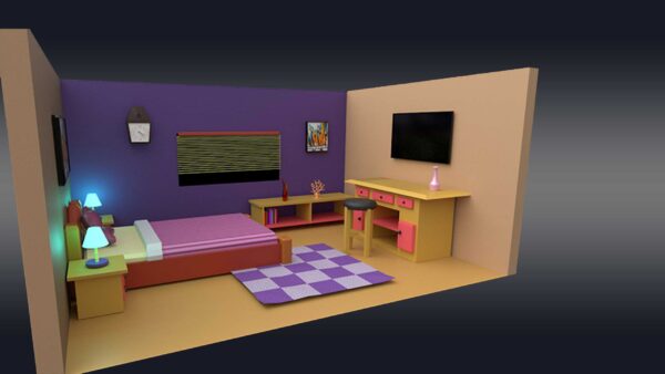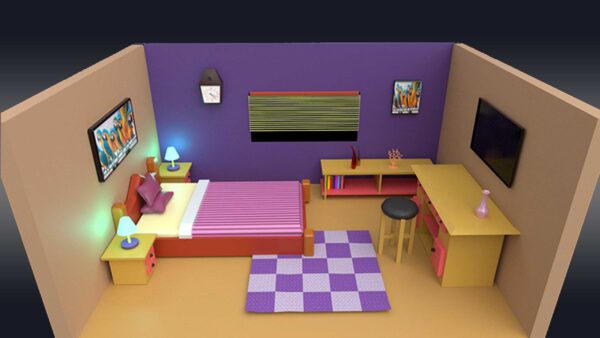 Our Cartoon Bedroom 3D Model brings a playful and vibrant design to your projects. Created with Autodesk Maya, this 3D cartoon bedroom model captures the charm of a cartoonish room with high-quality details. We applied textures using Substance Painter to ensure a realistic yet whimsical look. This 3D model for games and simulations is perfect, offering a blend of aesthetics and functionality.