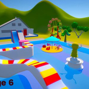 - Extensive collection of water park assets, including slides, pools, and interactive features.