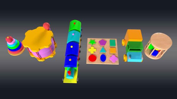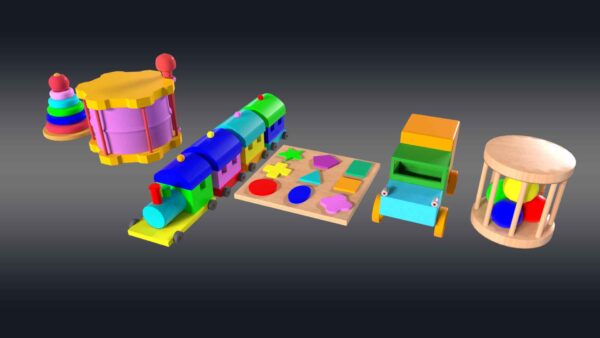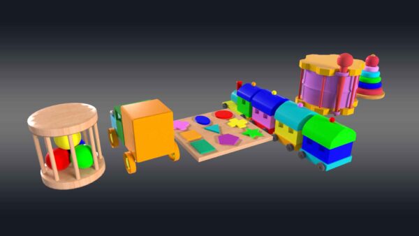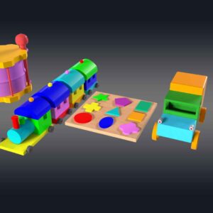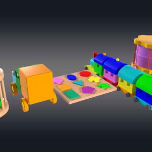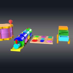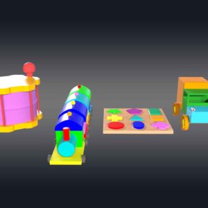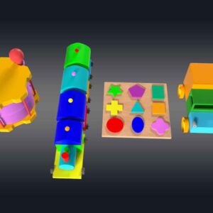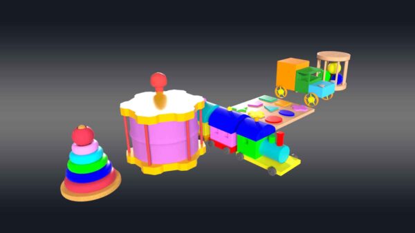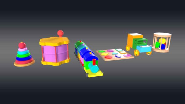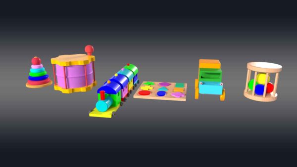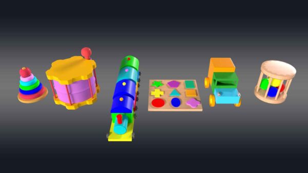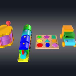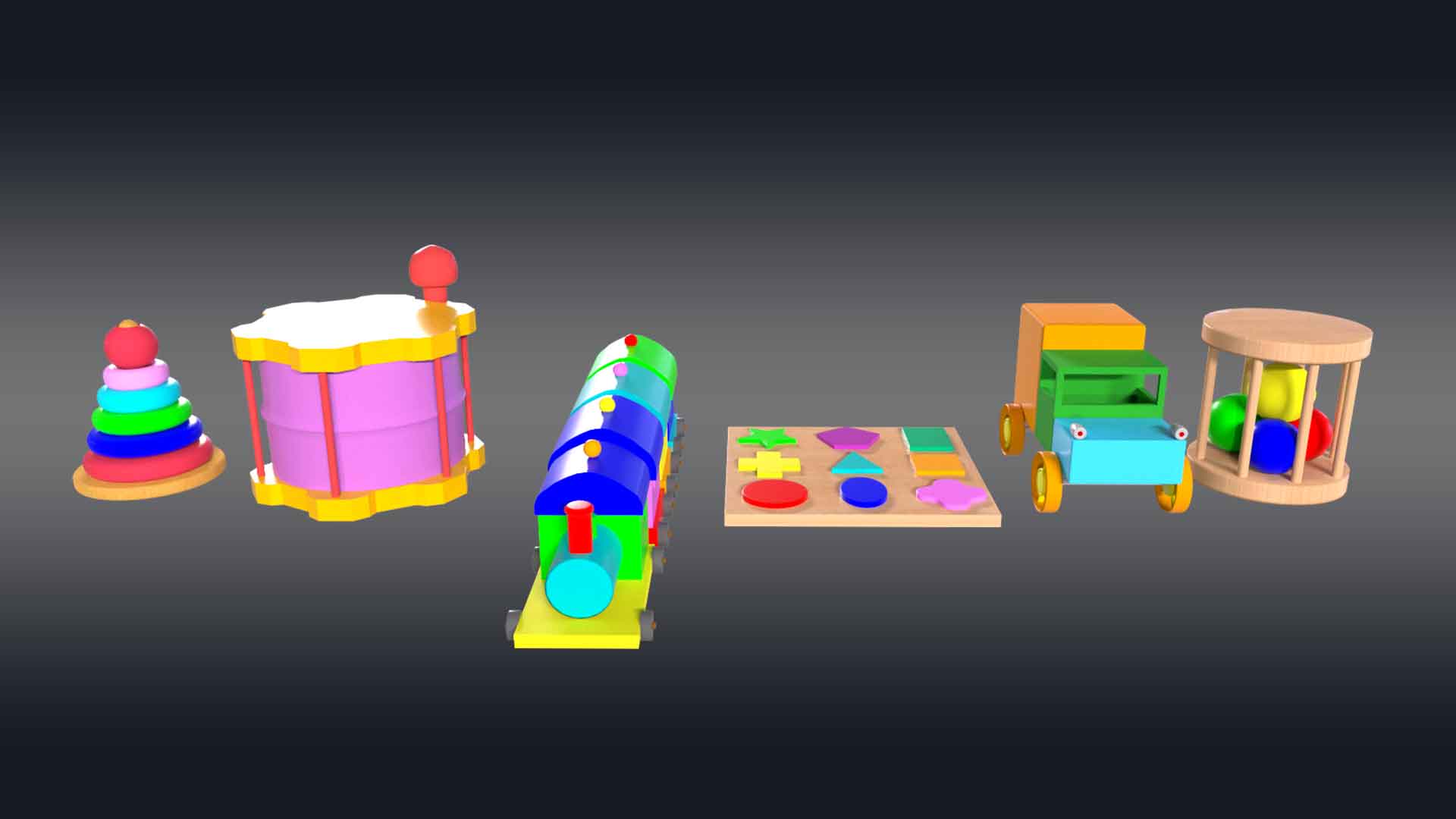 The 3D Toys Pack is an exciting collection of interactive, colorful, and educational 3D models designed using Autodesk Maya. This pack includes a variety of realistic 3D toys, such as a wooden cylinder with balls rattle, a shape-sorting toy, a drum toy, a train toy, and a truck toy. Each toy in this collection is designed with smooth edges, bright high-contrast colors, including red, blue, purple, yellow, orange, green, and aqua, making them visually engaging. The vibrant abacus in the pack is designed with a cone-shaped central peg and colorful rings of varying sizes, helping children learn counting and sorting.