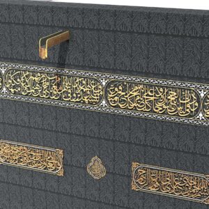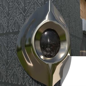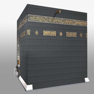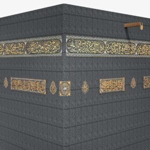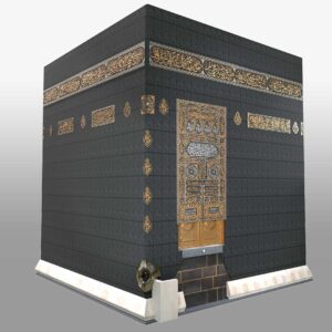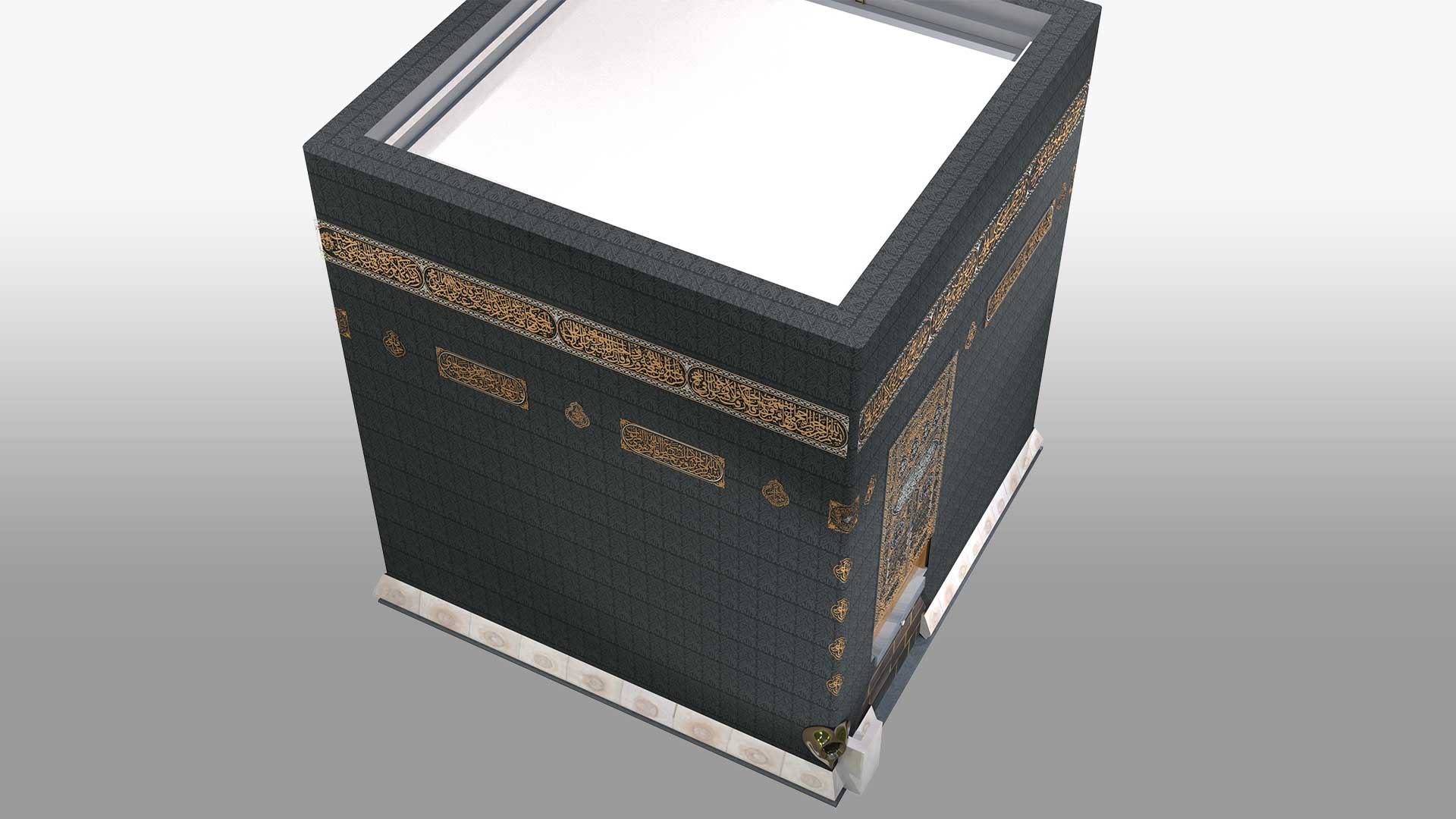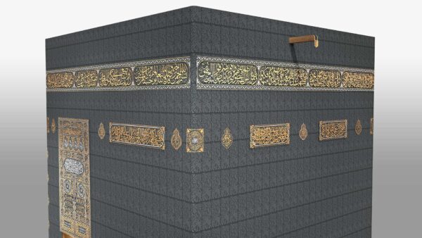 A 3D model Holy Kaaba is originally created using Autodesk Maya 2022. Its cuboid granite structure covered by the black Kiswah adorned with gold Quranic inscriptions. The 3d model Holy Kaaba includes the golden-plated door on the northeastern wall, the Black Stone (Hajar al-Aswad) set in a silver frame on the southeastern corner, and the golden spout (Mizab al-Rahmah) on the roof’s northwest side. This model can be used in games, educational videos and VR.