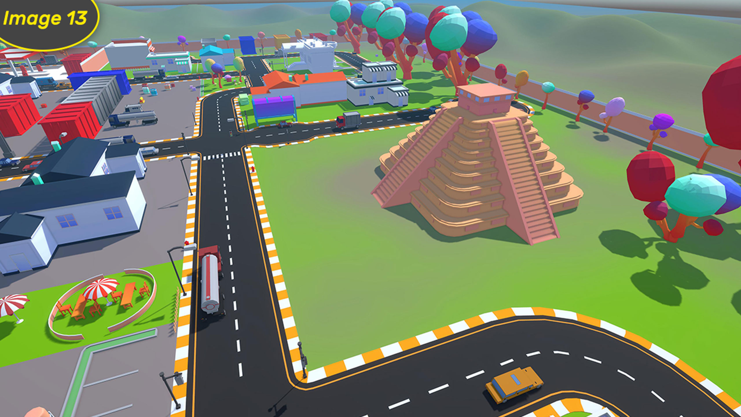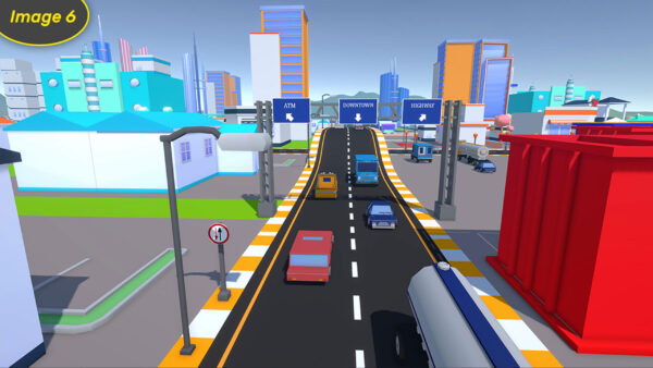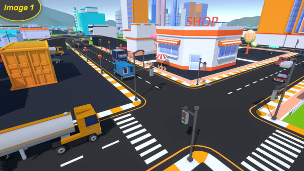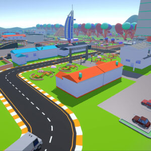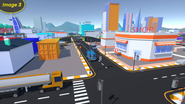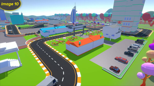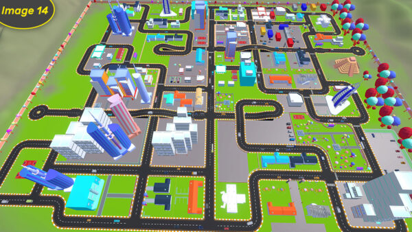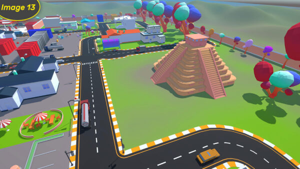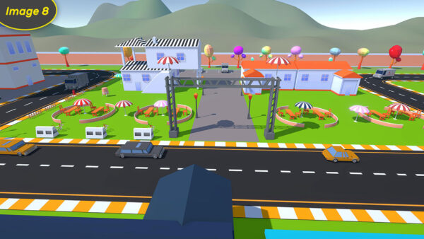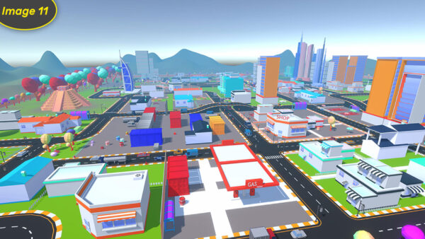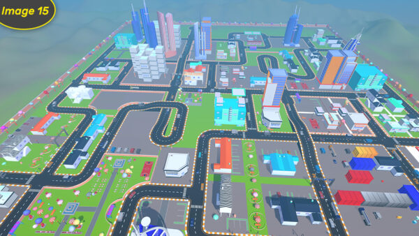 Excellent cartoon city environment. Pretty detailed. The buildings are awesome. It’s a great well optimized environment for city car racing game. Good work.