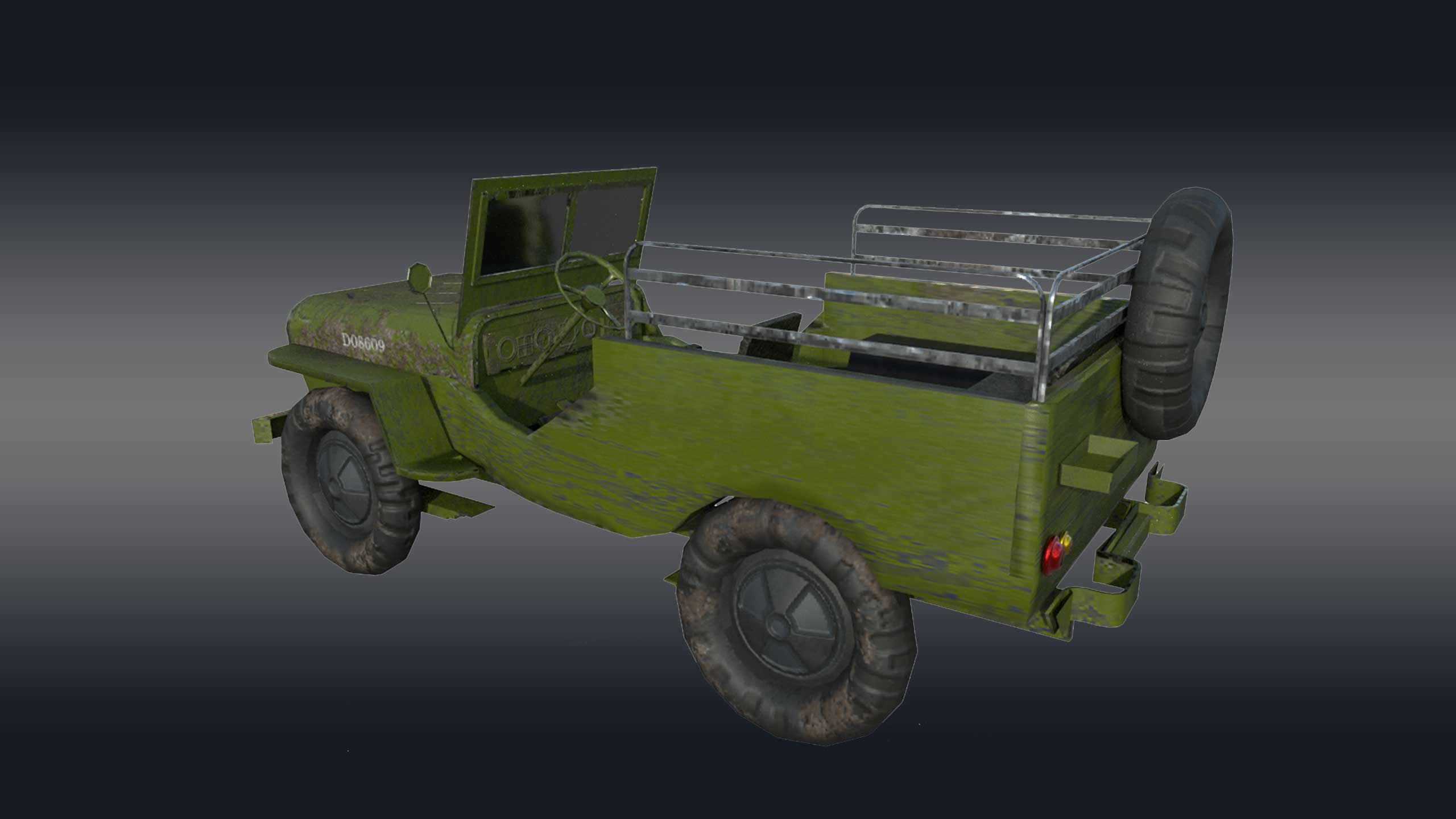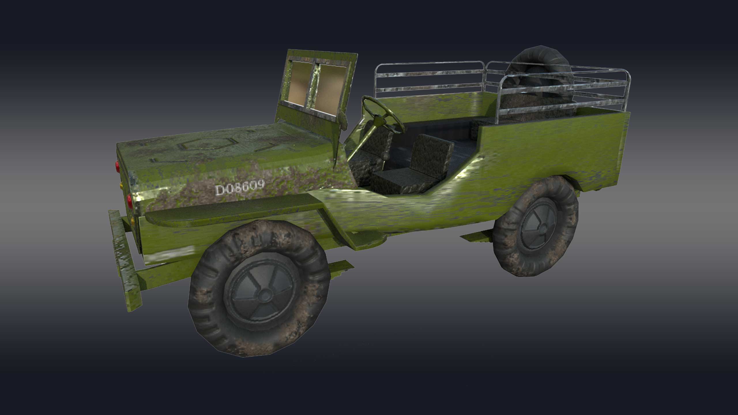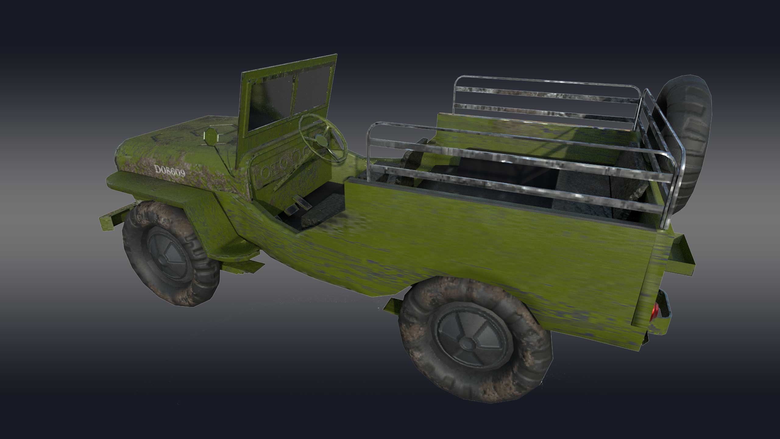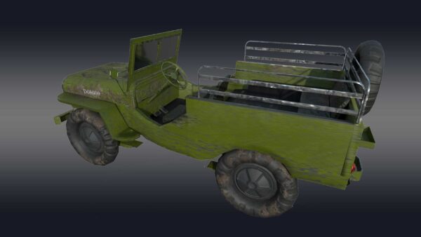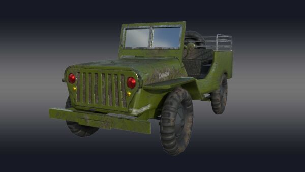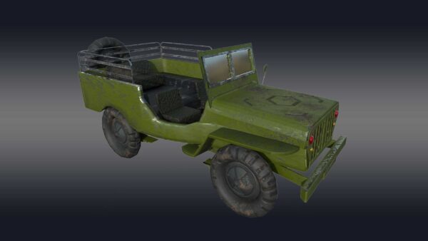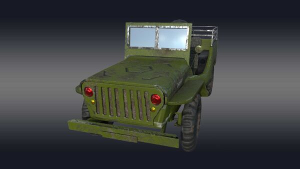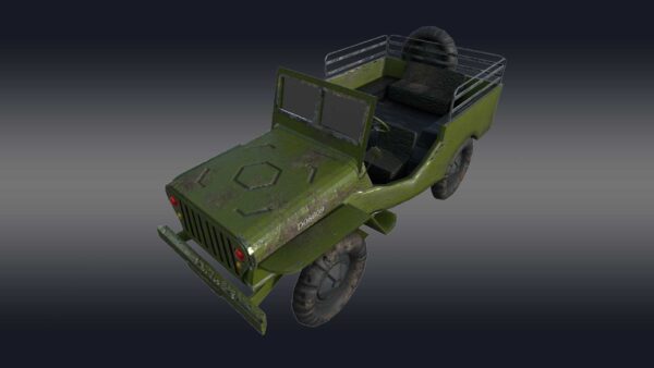 This detailed willy jeep is centered at the origin, allowing for easy scaling and placement. The clean UV mapping simplifies texture application, while the two texture resolutions—high and low—cater to both high-end and resource-limited environments. Each texture, including albedo, metallic, and normal maps, is provided in PNG format, with dimensions of 4096 x 4096 pixels. The high-resolution jeep texture maintains clarity and detail, no matter the distance.