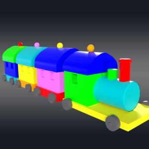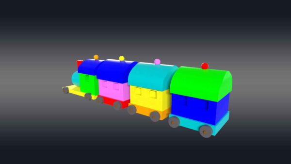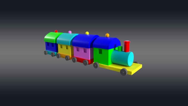 The 3D train toy is a bright and playful 3d model. Designed in bold primary colors like red, blue, yellow, pink, and green, this colorful 3D train instantly attracts attention. Its fun design is sure to engage children in 3d vidoes offering a delightful playtime experience. The 3D train toy moves smoothly, making it perfect for both interactive play and as a charming nursery or toy-themed room decoration. The 3D train toy is easy to use and includes simple drag-and-drop features for those incorporating it into digital environments.