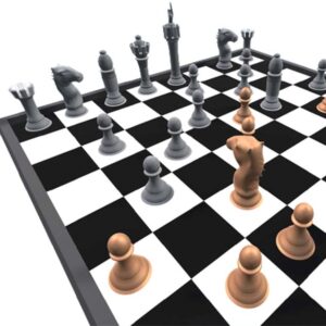 - 32 chess pieces with color variation (black and white) and chessboard with 8 horizontal rows(rank) and 8 vertical columns (file).